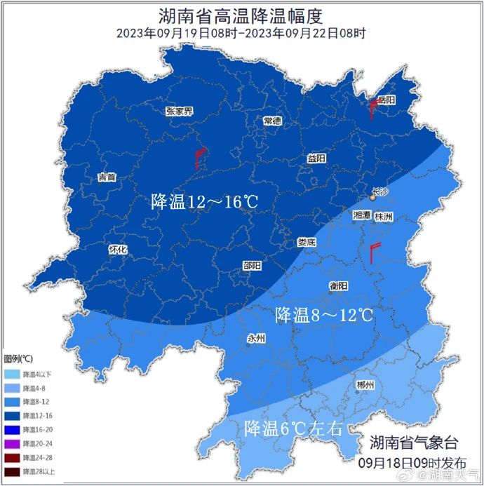 省气象台预计,18日晚至21日,湘北地区将有一次降温降雨、风力加大天气过程,并伴有短时强降水、雷暴大风等强对流天气,过程最高气温降幅可达10~12℃,局地可达14℃以上,其中20日至21日北风加大到4~5级,局地阵风7级,湘西北局地有暴雨(50~80毫米);22日至24日,省内以多云天气为主,湘西北、湘南多阵性降雨。另外,湘北地区21日至23日平均气温将降至20~22℃,有轻度“寒露风”。