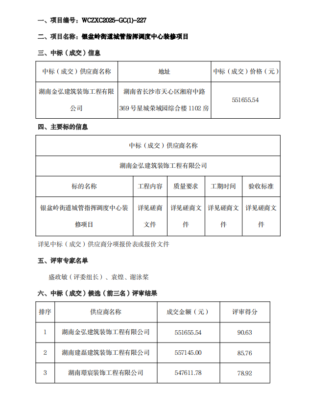 银盆岭街道城管指挥调度中心装修项目成交结果公告