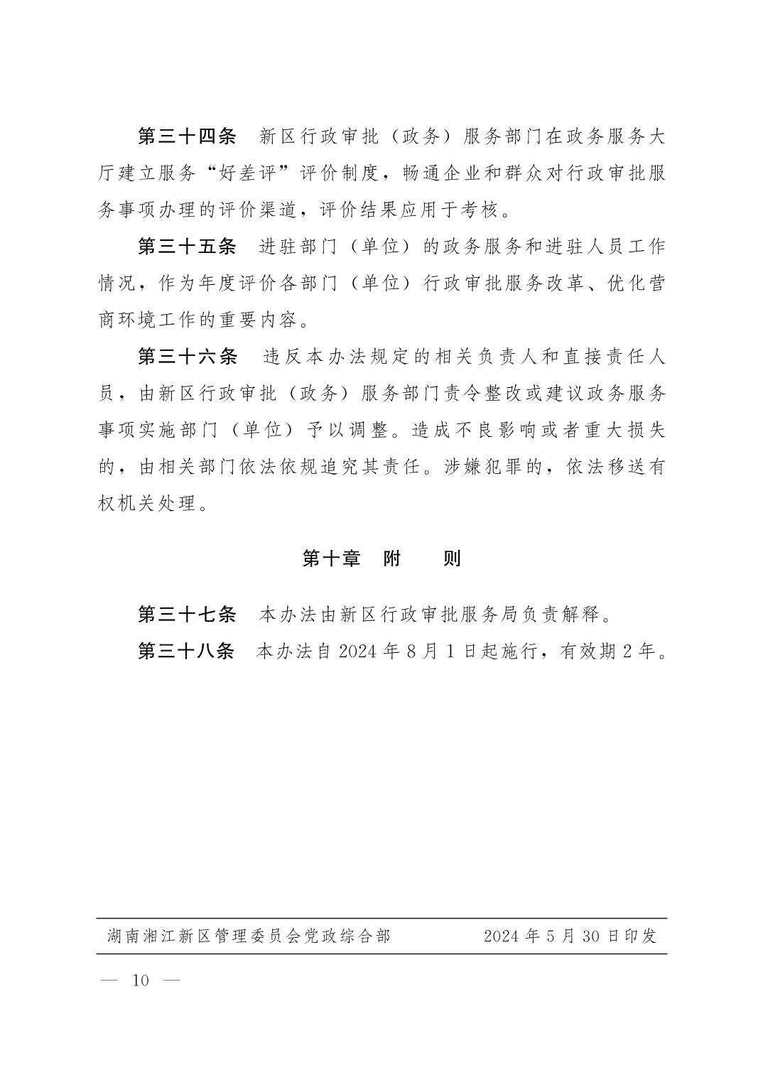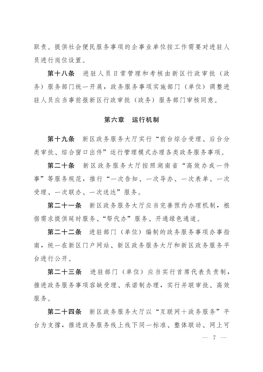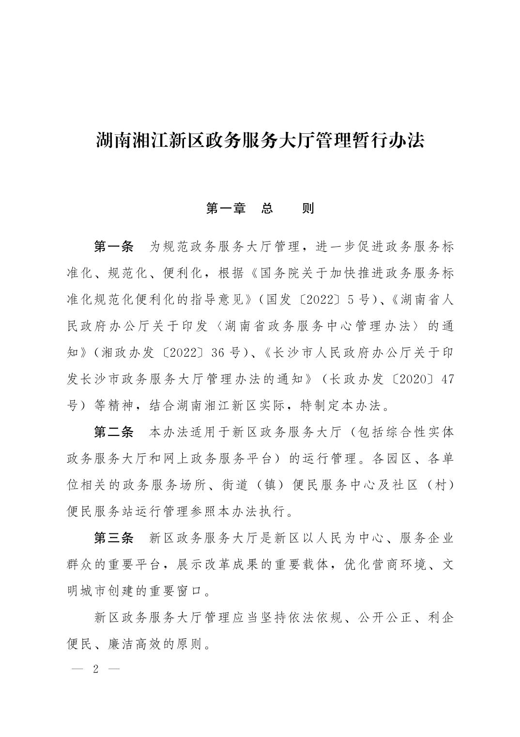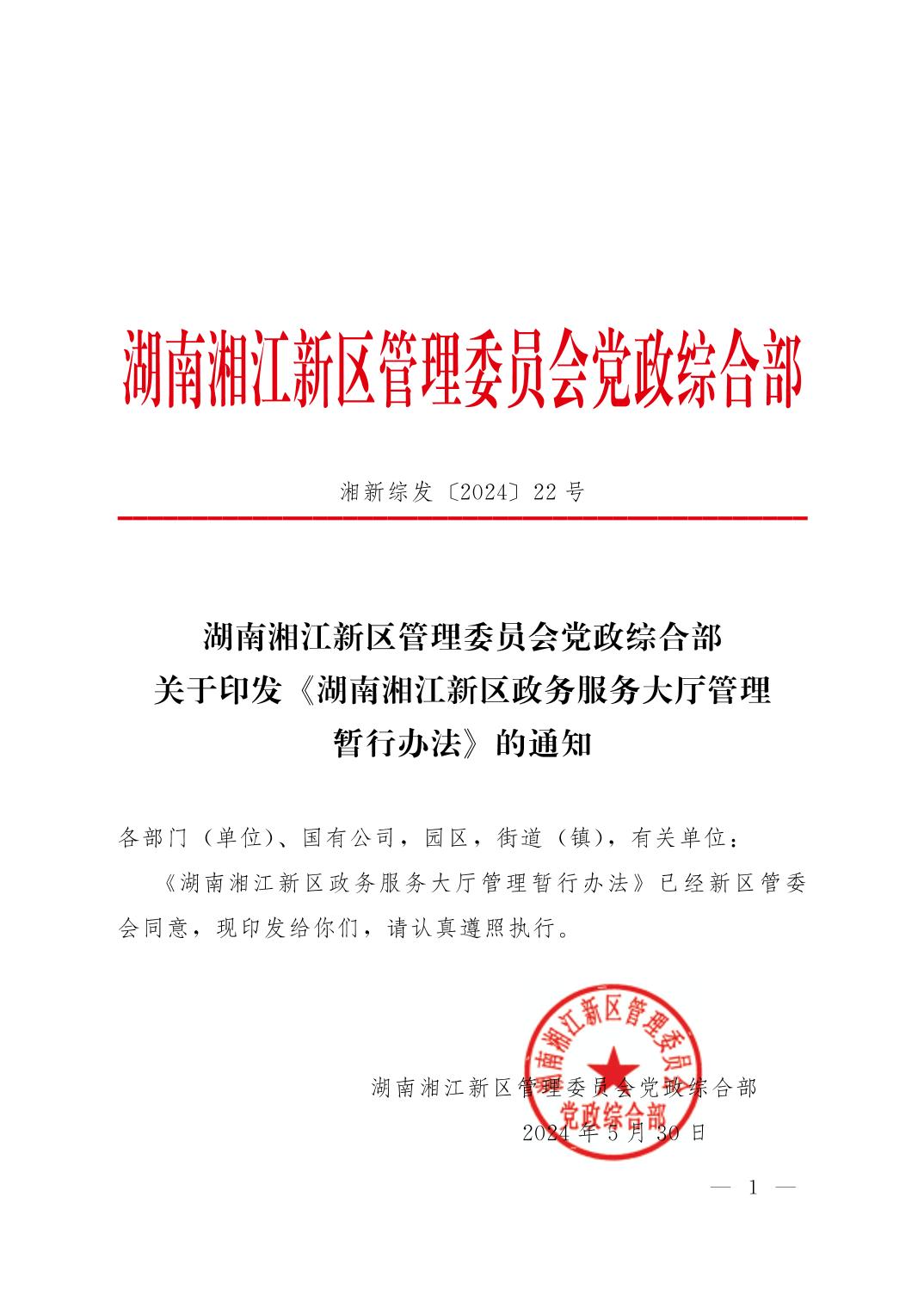 湖南湘江新区管理委员会党政综合部关于印发《湖南湘江新区政务服务大厅管理办法》的通知