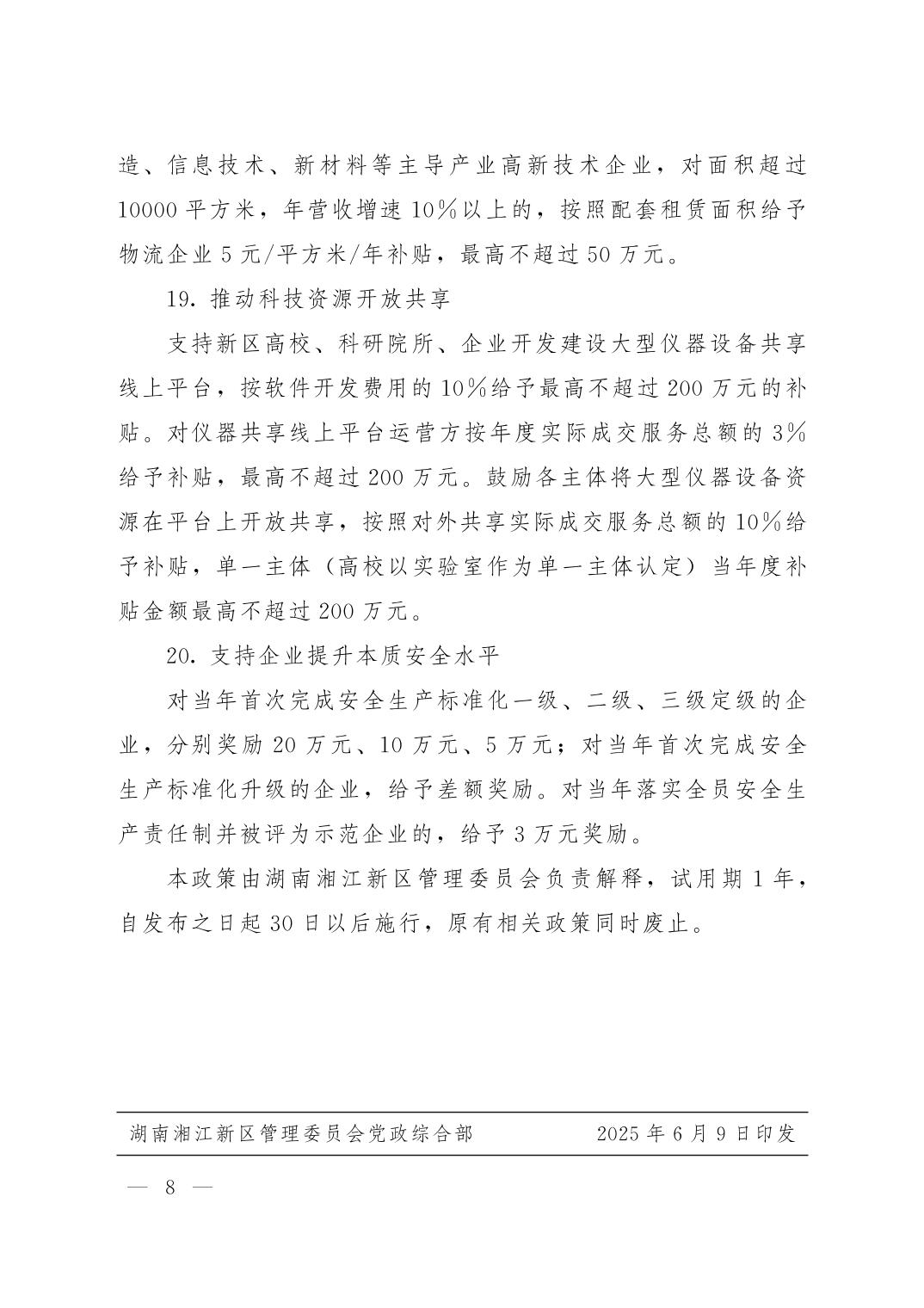 关于《湖南湘江新区(长沙高新区)促进经济高质量发展的若干政策(试行)》政策解读