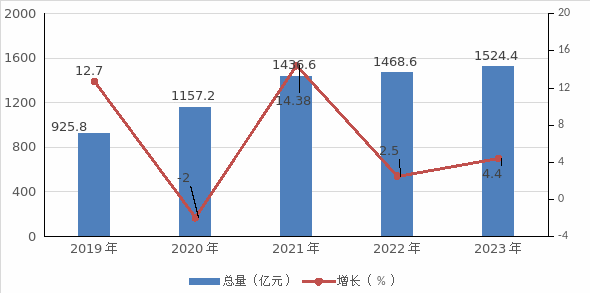 全年社会消费品零售总额1524.42亿元,同比增长4.4%。